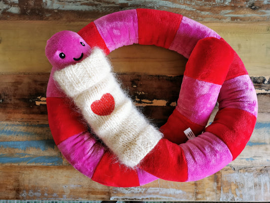 Giant Worm Plush with knitted sweater, Orange-Pink 200cm, fun smiley extra large plush