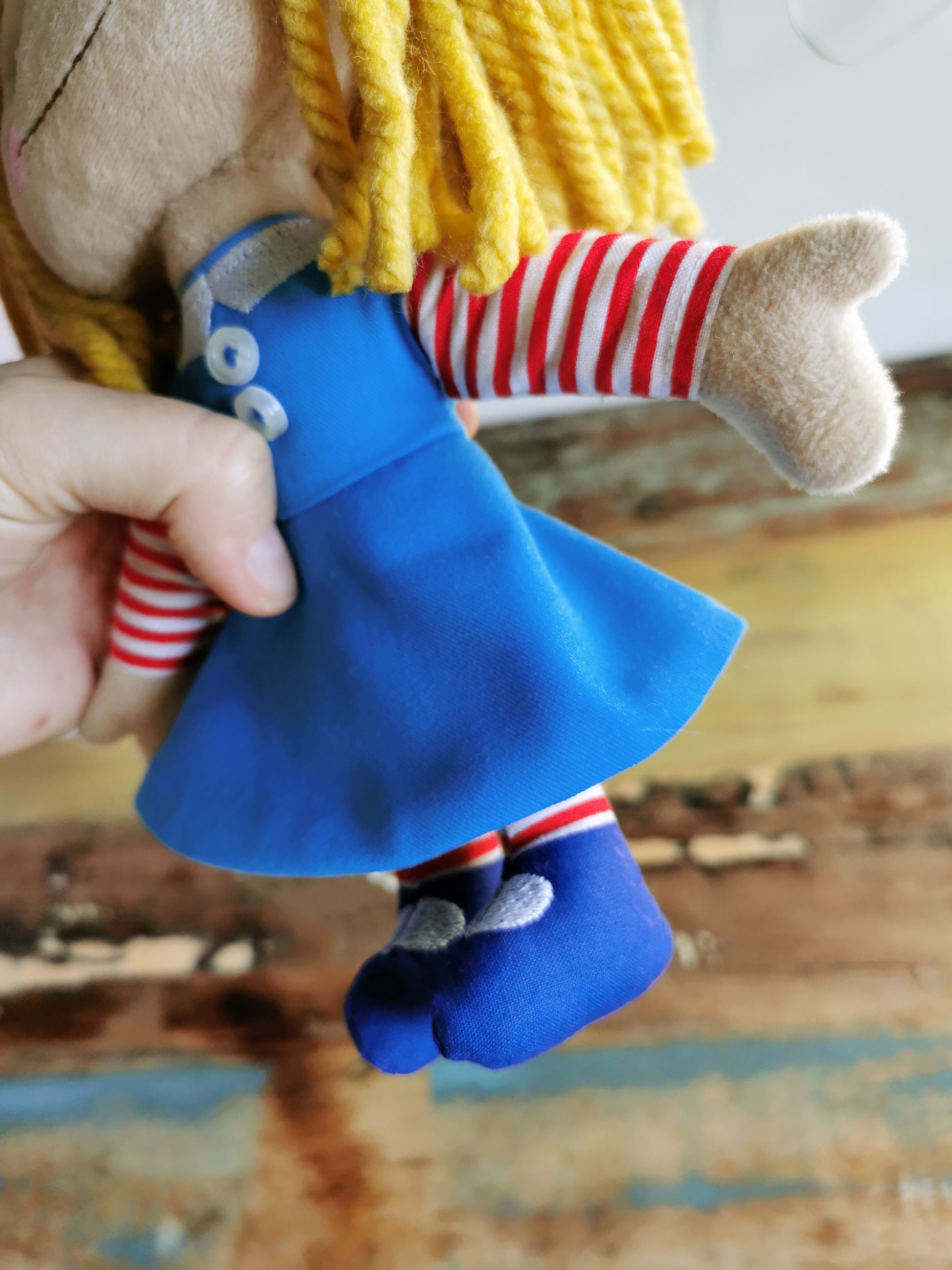 She is 23 cm tall, she's very light and precious, made of soft plush, cotton, embroidery details, buttons, virgin fiberfil.