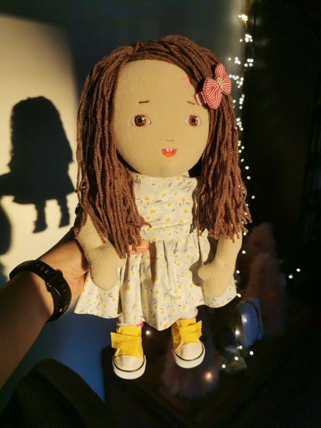 THIS OFFER INCLUDES 1 DOLL of 50 cm with embroidered face details, flexible neck arms and legs.